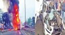 - બેંગ્લોર હાઈવે પરના નવેલ બ્રિજ સેલ્ફી પોઈન્ટ પર દુર્ઘટના - બે કન્ટે્નર ટ્રક વચ્ચે ફસાયેલી કારમાં આગ લાગતાં ચાર લોકો બળીને ખાક: અનેક વાહન આગમાં લપેટાતાં ભયાવહ દ્રશ્યો મુંબઈ : મુંબઈ- બેંગ્લોર હાઈવે પર નવેલ બ્રિજ સેલ્ફી પોઈન્ટ પર આજે સાંજે એક કન્ટેનરનું બ્રેક ફેલ થઈ જતાં ડ્રા